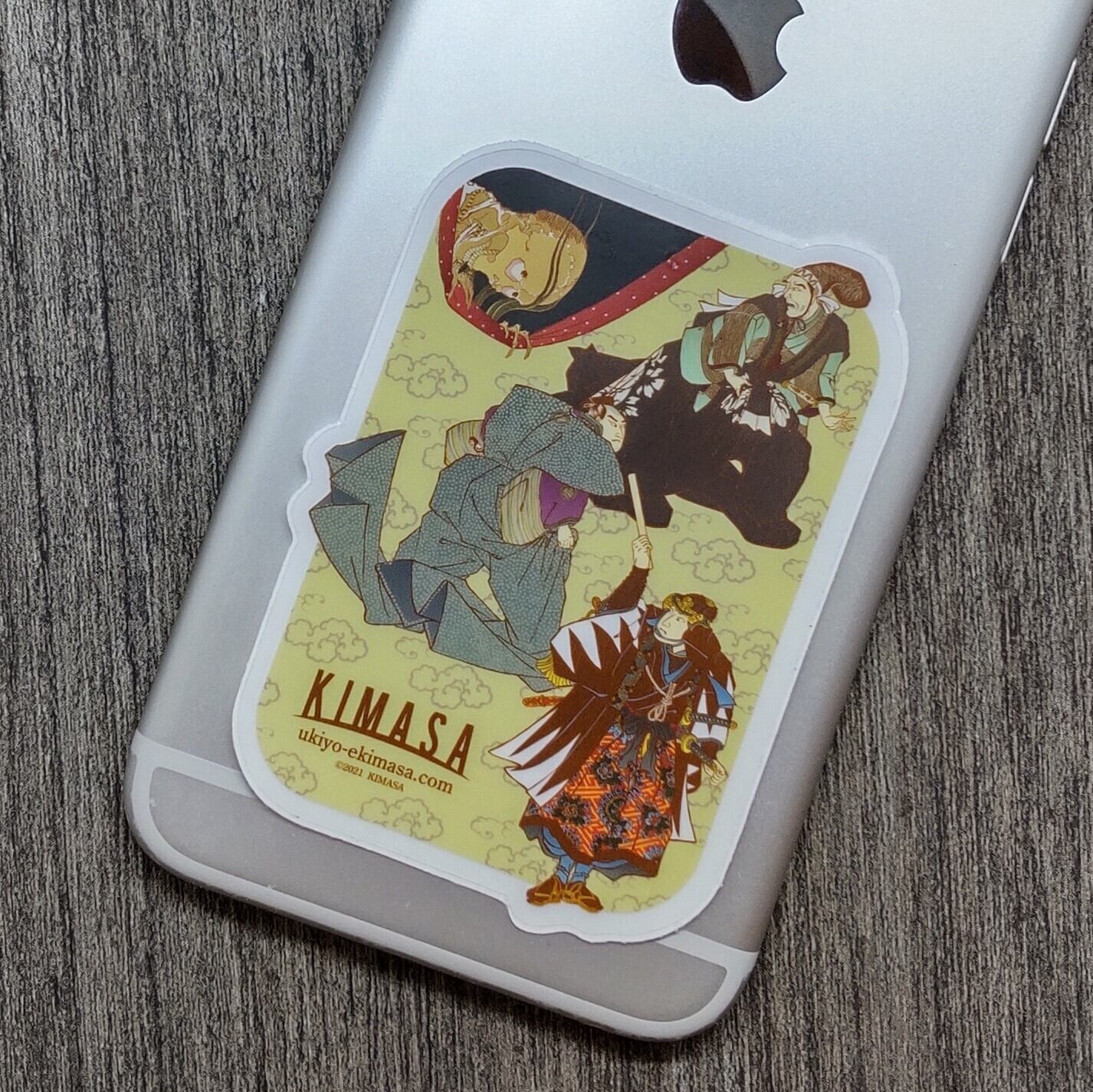 限定10個生産 歌川国芳の忠臣蔵と葛飾北斎の死神をコラージュ スマートフォンにちょうどいいステッカー クリア印刷 サイズ: 54 mm x76 mm 送料込み