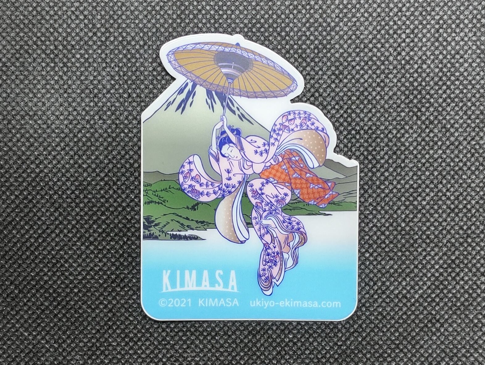 浮世絵 傘をひろげて舞う少女 ステッカー | 浮世絵商品専門店