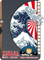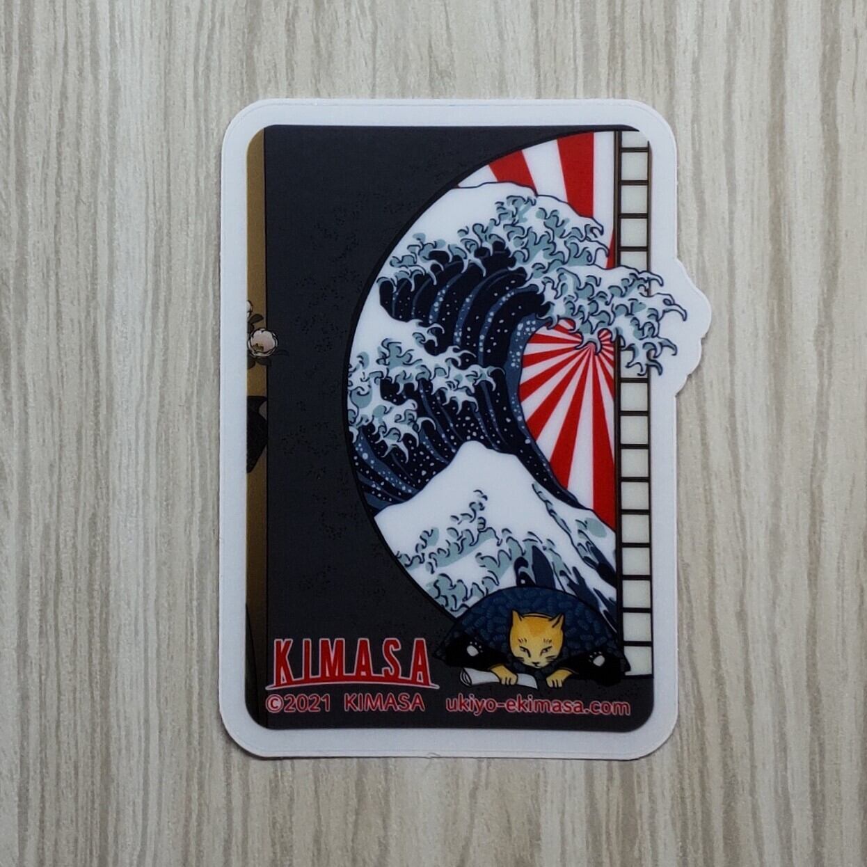 浮世絵 お辞儀をする猫と波 ステッカー