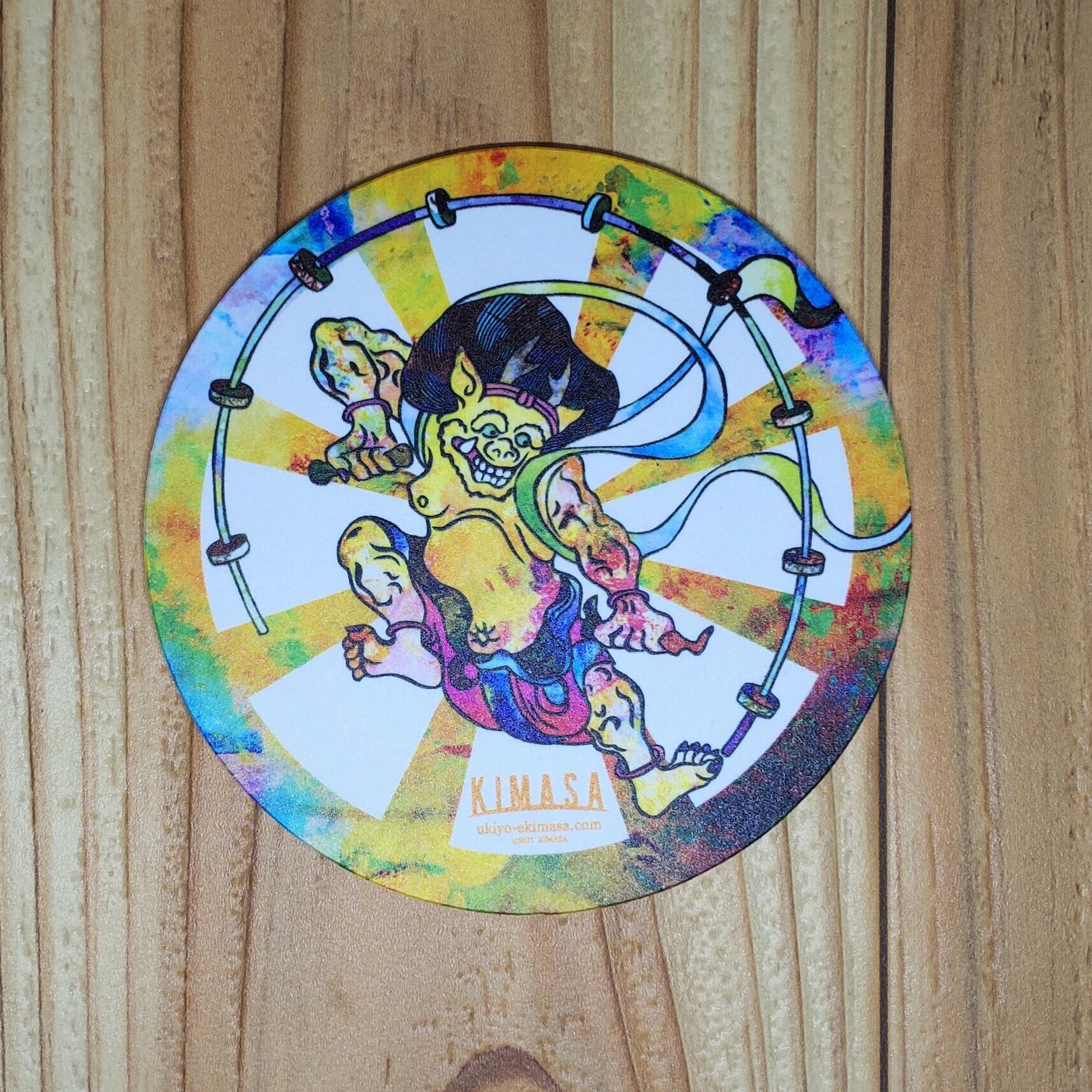 限定10個生産 カラフルな風神雷神 ペーパーコースター2枚セット サイズ: 直径94 mm、厚さ2mm 送料込み