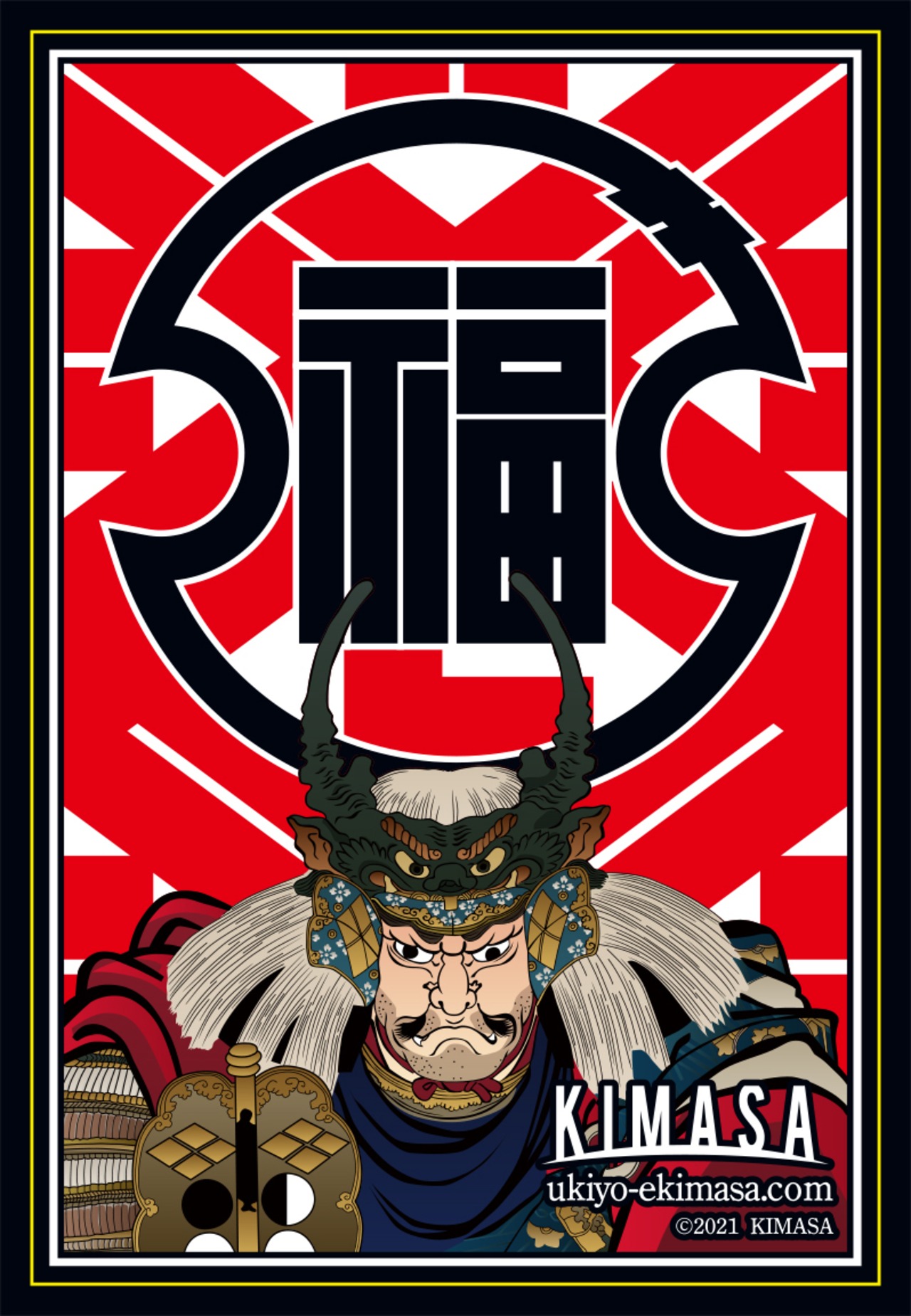 歌川国芳が描いた、戦国武将 武田信玄を江戸時代の千社札風にデザインして、ステッカーにしました。